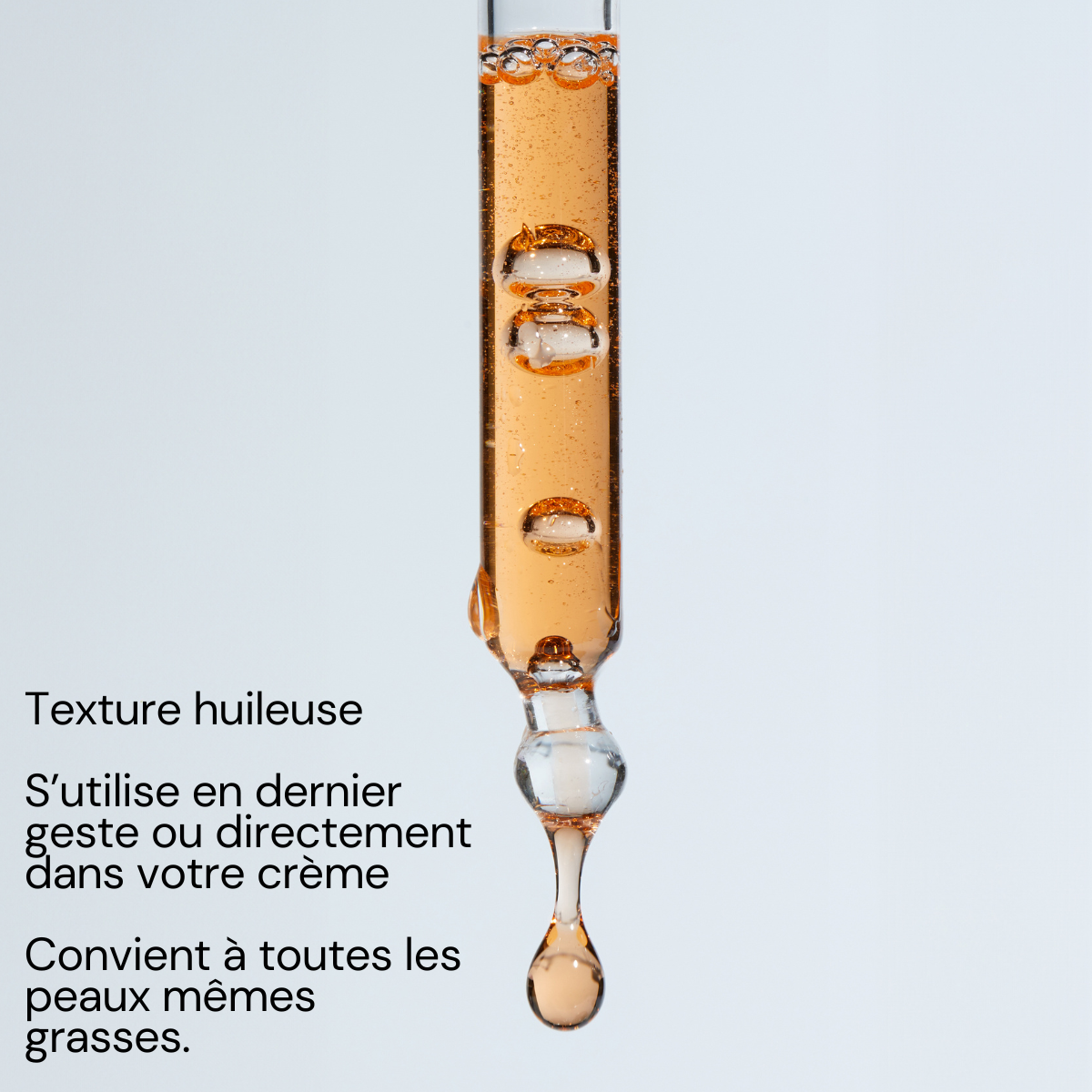 Ajouter 3 gouttes dans la crème puis appliquer sur le visage et le cou matin et/ou soir ou en dernier geste de la routine de soin, directement sur la peau, pour un effet glowy.